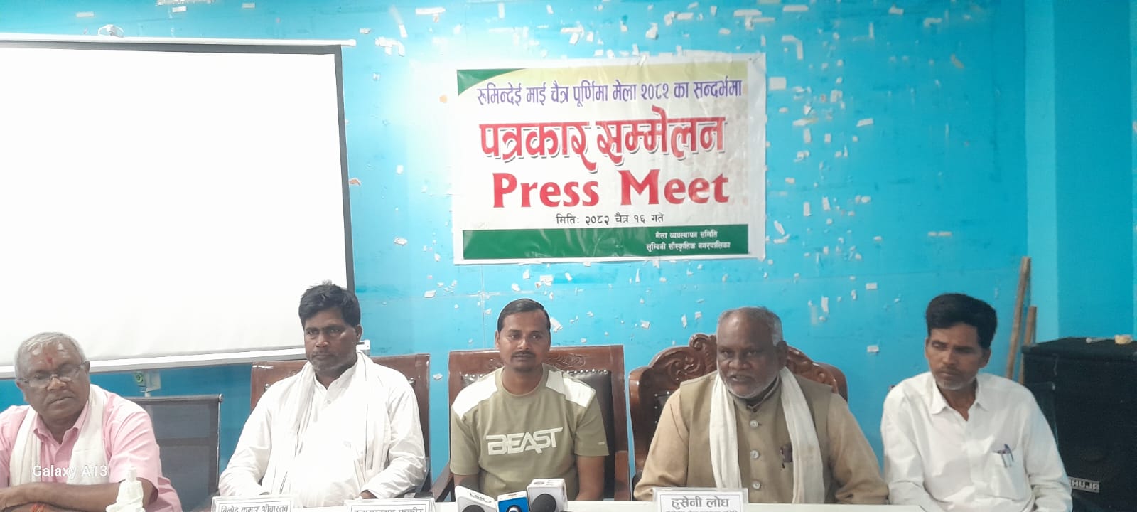 रुमिन्देई माई चैते पूर्णिमा मेला यहि १८ गते देखि २२ गते सम्म सन्चालन भएको छ । मेलाको उद्घघाटन गेट नम्बर ५ वाट विहान ११ बजे बहु साँस्कृतिक कलश सोभा यात्रा निकाली मेला स्थलमा पुगि मेलाको उद्घघाटन गरिने छ । मेलामा मुख्य आर्षकहरू बुद्ध विरहा नृत्य, कुस्ति दंगल, नाचगान, बौद्ध आध्यत्मिक नाटक, आकसे झलुङ्गे पिंग, सरकास, जादुगर र विभिन्न साँस्कृतिक सहितको प्रतुति रहने मेला समितिका समंयोजक विनोद श्रीवास्तवले बताउनु भयो ।